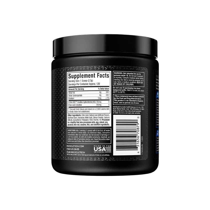 مجموعة الكرياتين HCL من العلامة التجارية الشهيرة Muscletech الذي جعل مع التكنولوجيا المتقدمة لإعطاء عضلاتك جرعة قوية من الكرياتين كل كمية ومساعدتهم على الحصول على أقوى وأكبر إضافية فاعلية من خلال التدريب الخاص بك تماما كما يتكون من الكرياتين و لا توجد الحشو في صيغة تزويد العضلات الخاصة بك مع فقط الكرياتين و هذا أيضا سوف تجعل تناسبها مع غيرها من المكملات الغذائية مثل البروتين قبل التمرين والمكملات الغذائية.