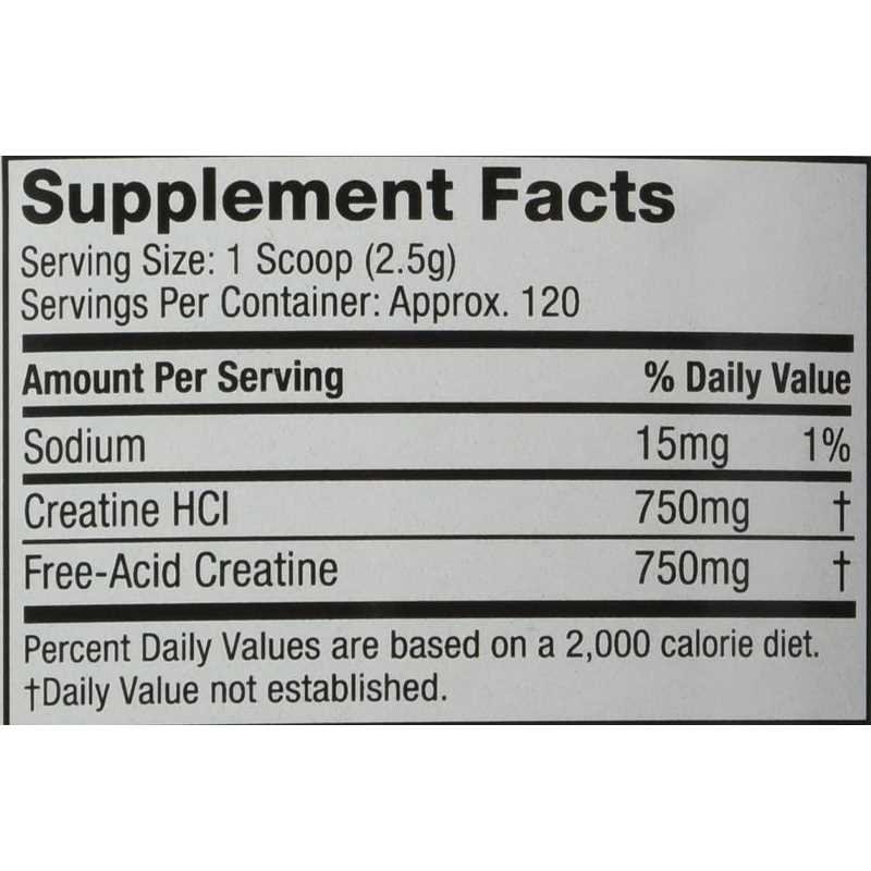 إجمالي الدهون 0 0D44 إجمالي الكربوهيدرات 0 0D44 مجموع السكريات 0 0D44 الصوديوم 20 ملغ < 1D44 الكرياتين هيدروكلوريد (HCL) 750mg