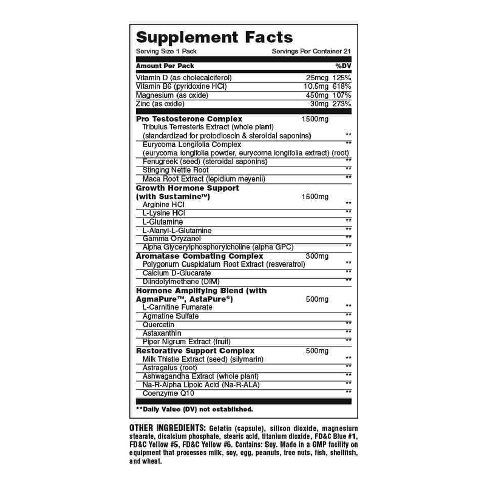 - Hormone Amplifying Blend includes Carnitine, Agmatine Sulfate and Astaxanthin among other ingredients to enhance testosterone and the growth hormone